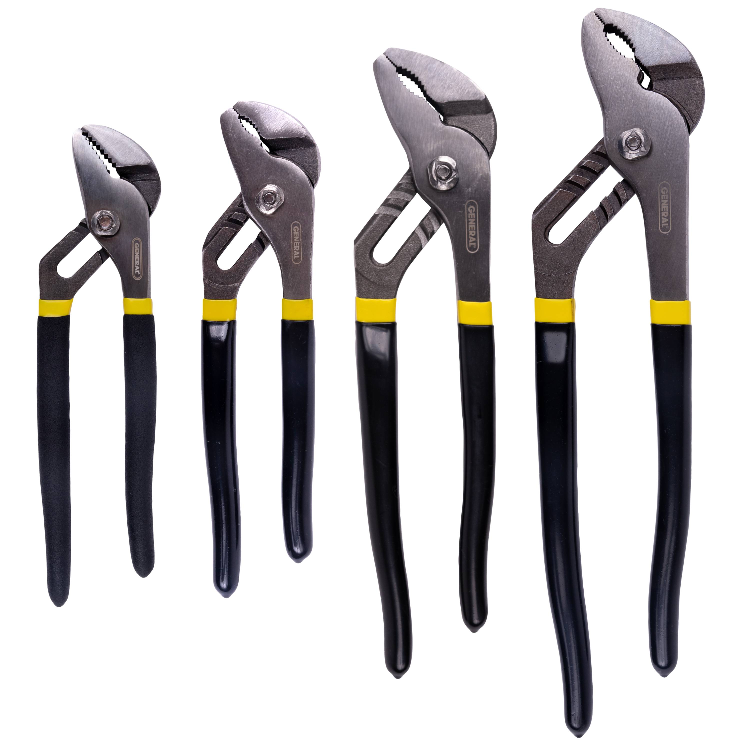 The 4 Piece Tongue and Groove Pliers are the perfect tools to get the job done. Ideal for homeowners, DIYers, handymen or mechanics, this product makes gripping and twisting tasks easier to perform. The set includes sizes: 6 in., 8in., 10 in., and 12 in.
