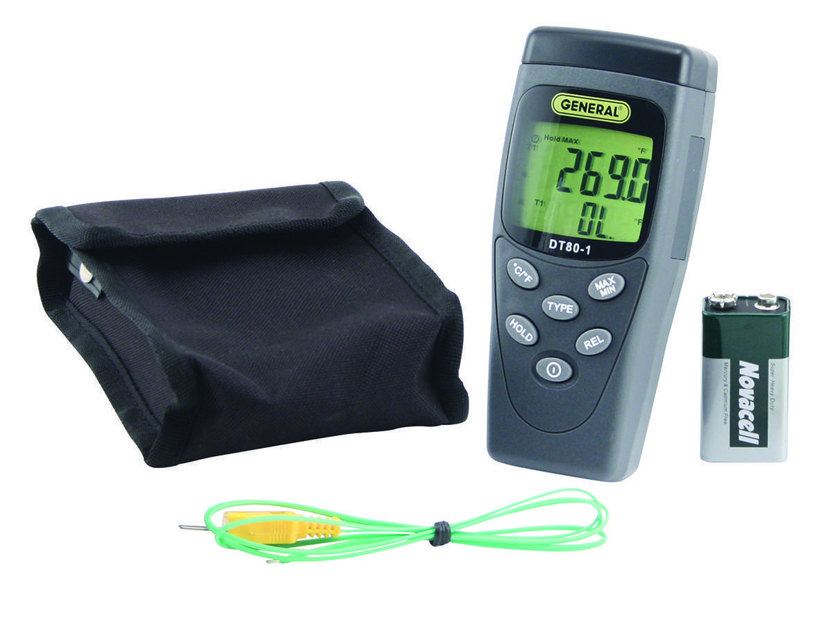 The #DT80-1 One-Channel Types "K" and "J" Thermocouple Thermometer is ideal for measuring very high or low temperatures in a commercial or industrial environment.